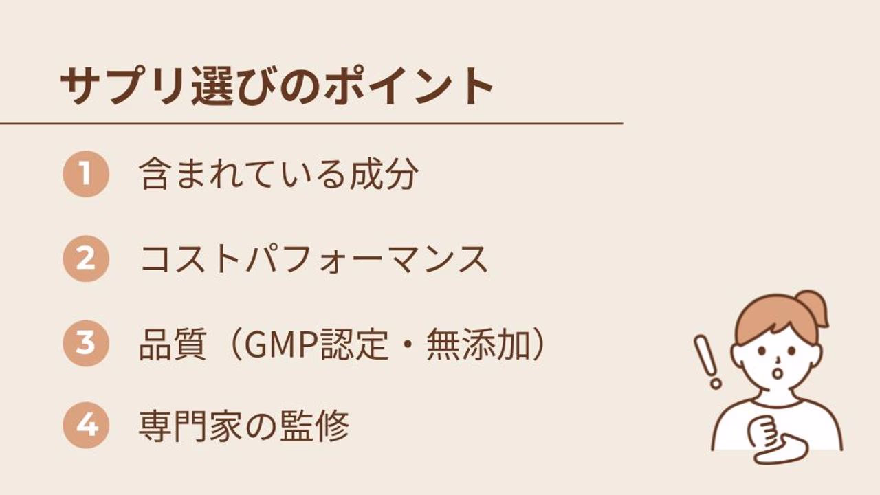 サプリを選ぶ際には、成分量や品質、そして専門家の推奨などを基準に、ご自身が納得できるものを見つけましょう。