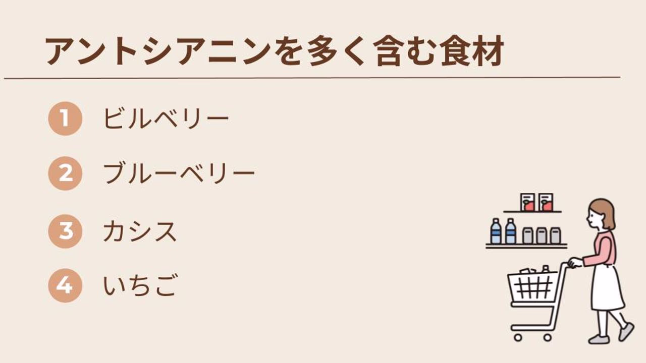 アントシアニンはポリフェノールの一種で、物を見るために必要な「ロドプシン」という物質の再合成を助ける働きがあることで知られています。