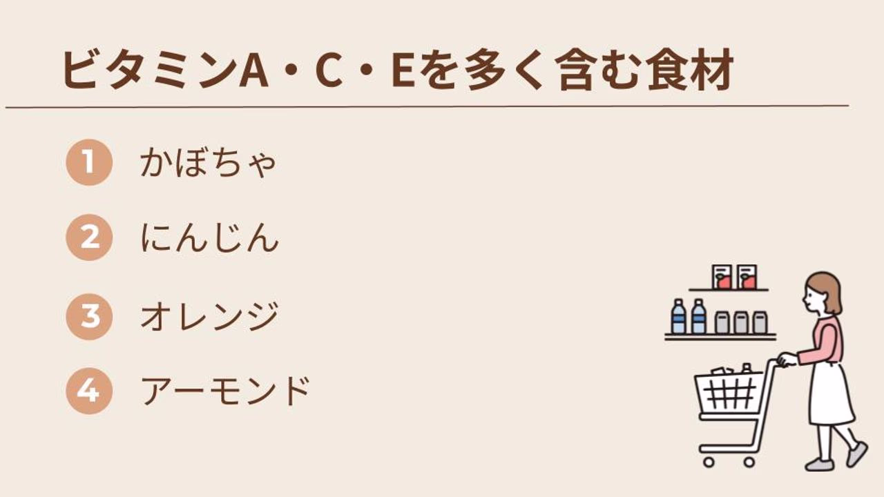 これらは互いに協力し合って働くため、単体で摂るよりもバランスよく摂取することが大切です。日々の食事に、カラフルな野菜や果物、ナッツなどを取り入れることを意識してみましょう。