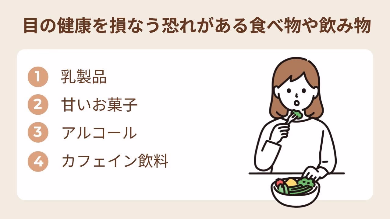 上記4つは、目の健康を損なう恐れがある食べ物や飲み物として知られています。