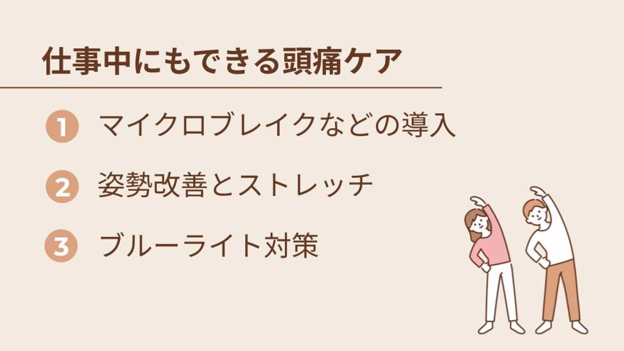 画面の見過ぎによる負担を溜め込まず、こまめに分散させる意識が、つらい頭痛対策につながります。