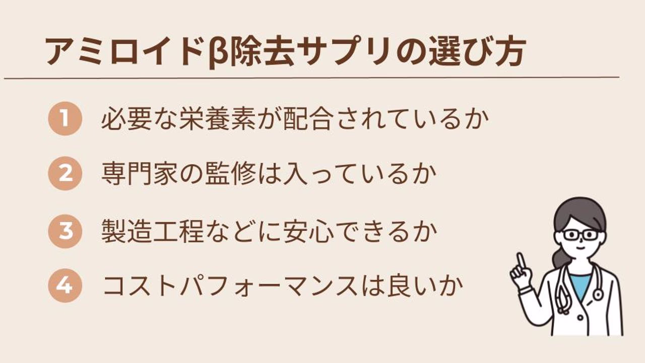 ここでは、アミロイドβの蓄積ケアを目的としてサプリを選ぶ際に、ぜひチェックしていただきたい4つの大切な基準について解説します。