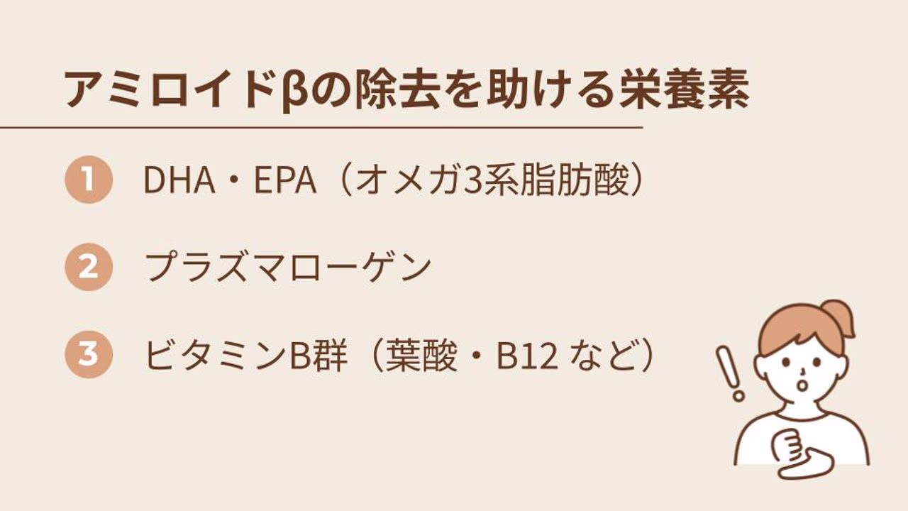 - アミロイドβの除去を助けるサプリに含まれる栄養素