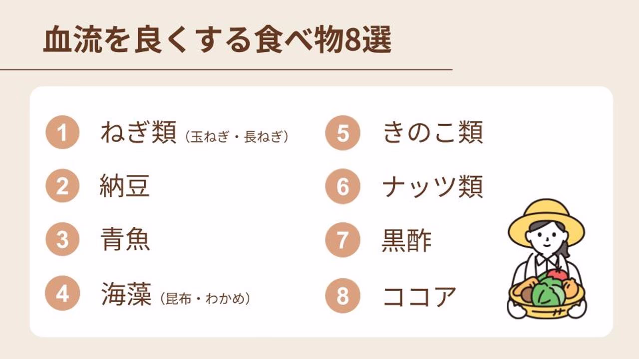 血流を良くする食べ物には、ねぎ類や納豆、青魚、海藻、きのこ類などがあります。