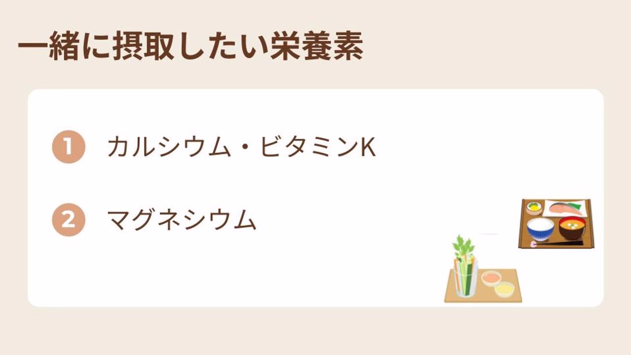 - ビタミンDサプリと一緒に摂取したい栄養素