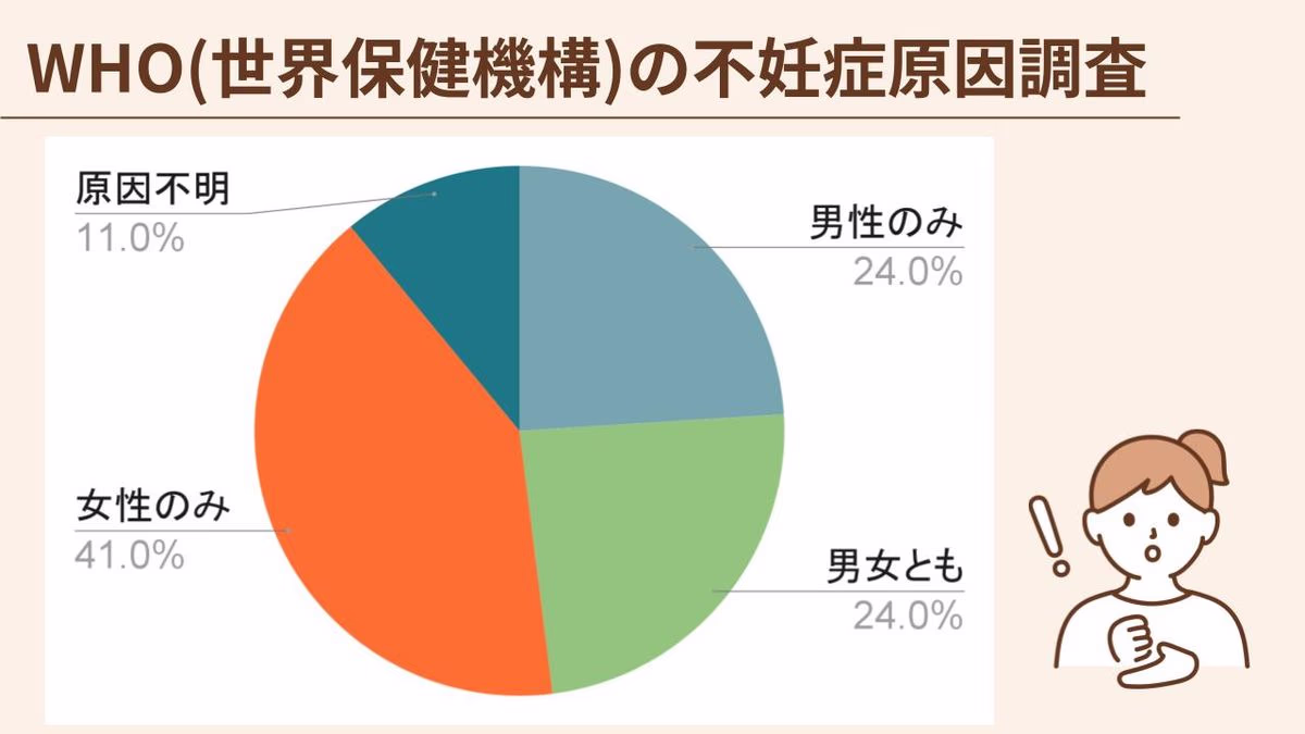 WHOでも、不妊症の原因の約半数は男性にあると報告しています。