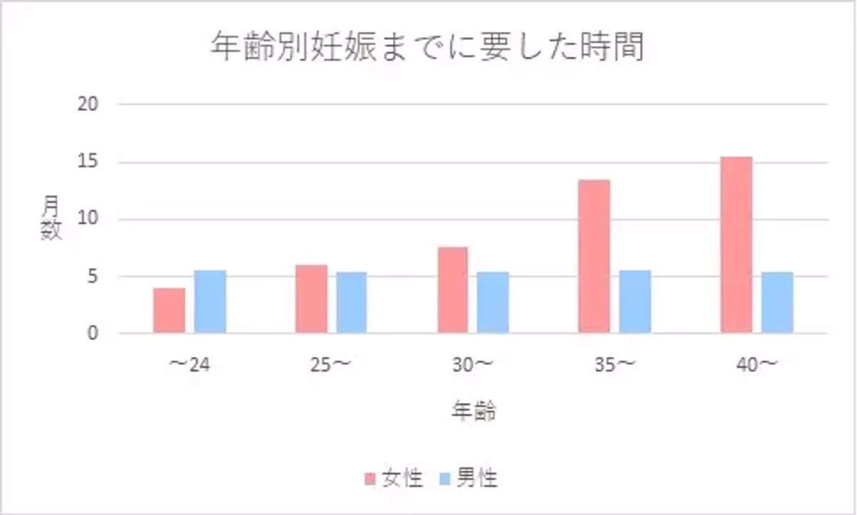 24歳以下の女性でも、妊活から妊娠にいたるまでに4ヶ月〜5ヶ月程度かかっていることがわかります。