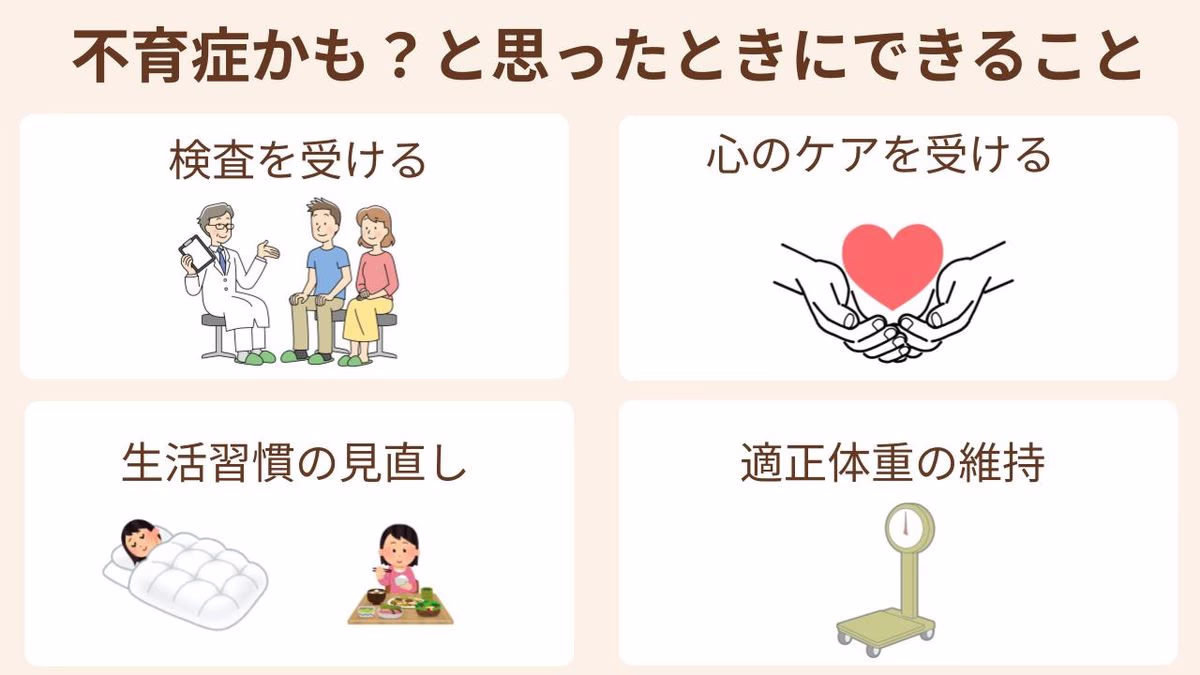 流産を繰り返す中で「今の自分にできることはないだろうか」と考える方は少なくありません。最後に、今できることを4つご紹介します。