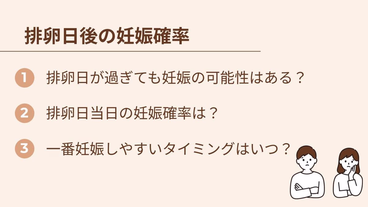 「排卵日後でも妊娠できるの?妊娠確率は?」「妊娠しやすいタイミングはいつ?」