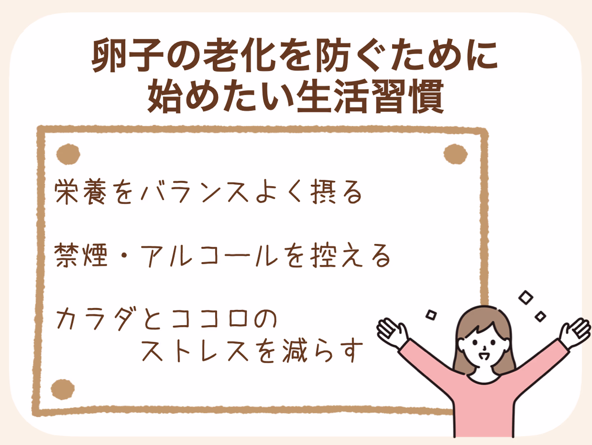 卵子の老化を防ぐために始めたい生活習慣のポイントは3つあります。