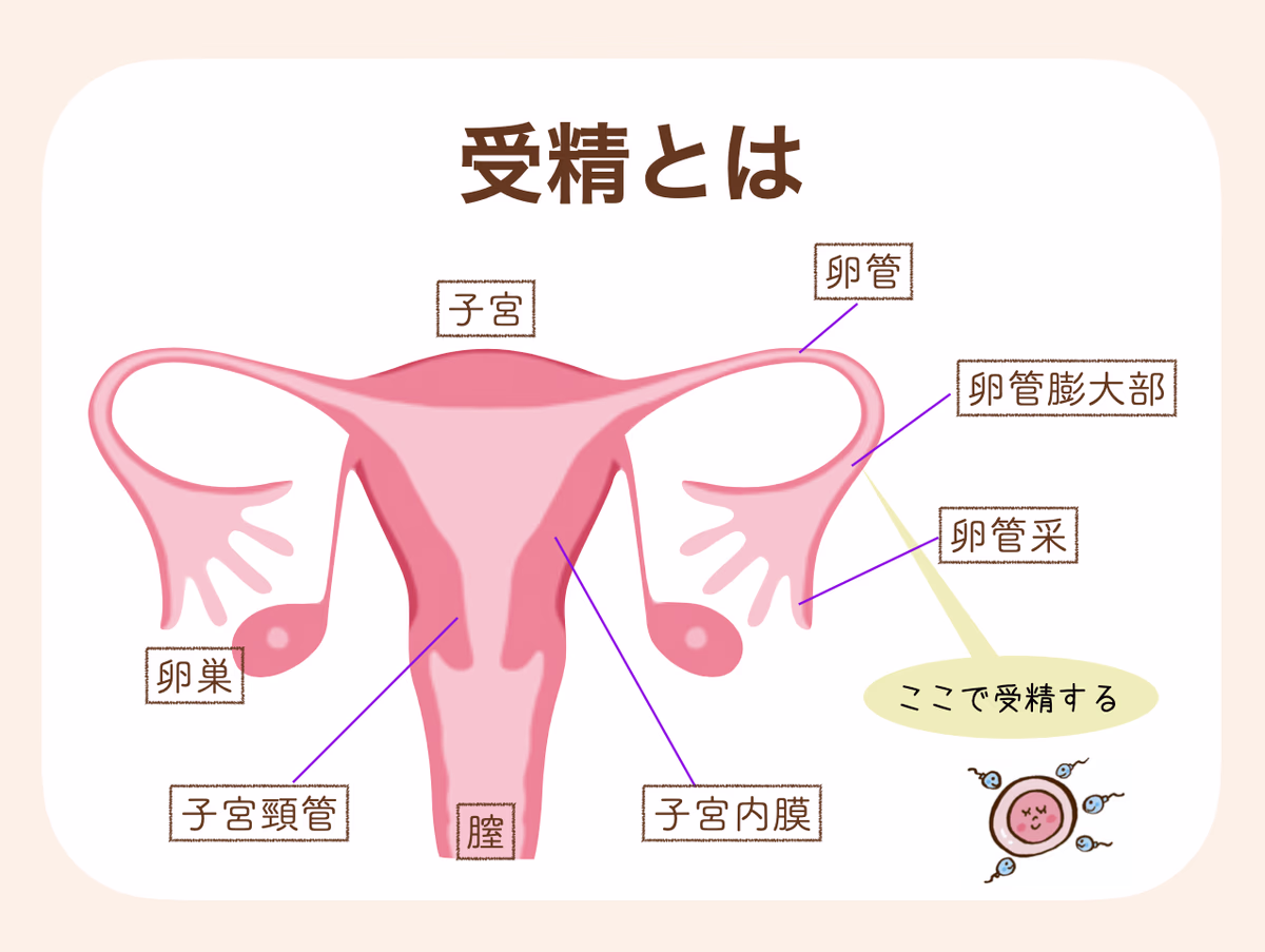 「受精」とは、成熟して排卵した卵子が卵管膨大部へと移動し、その卵子の中に精子が入り込むことで受精卵となることをいいます。