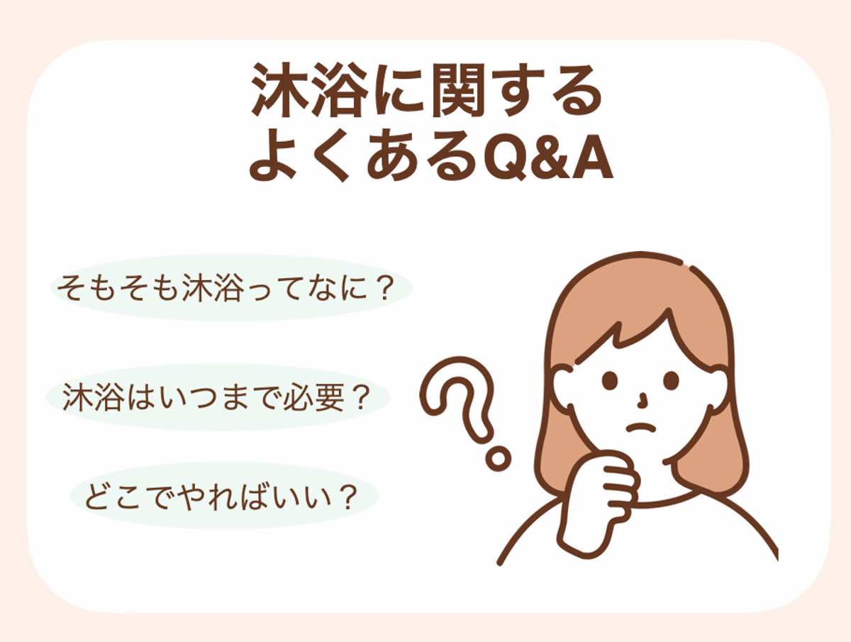 最後に、沐浴に関するよくある質問をまとめました。気になる疑問をすっきり解決して、赤ちゃんの沐浴を始めましょう。