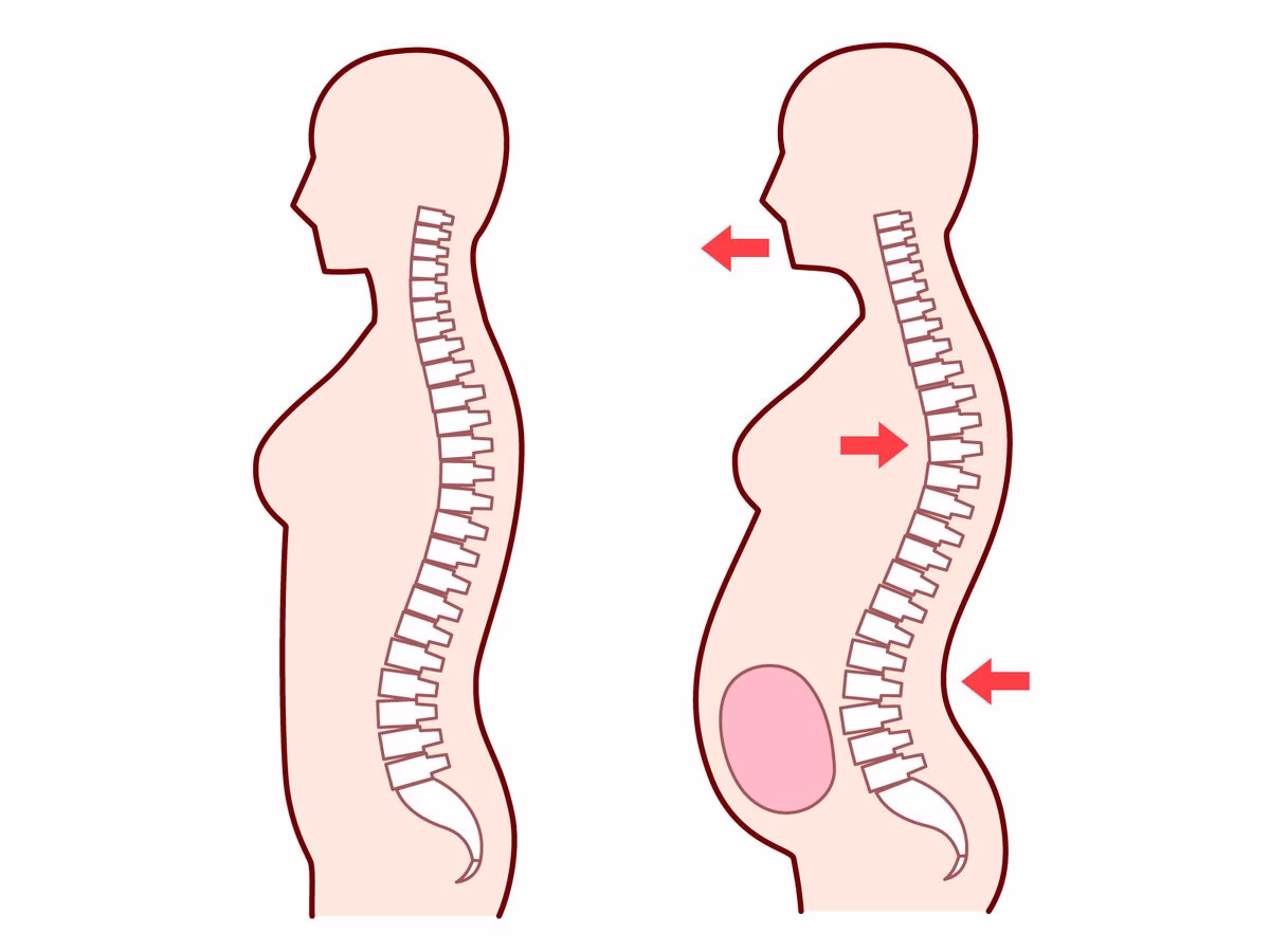 お腹が大きくなると、お腹を支えるために重心が後ろに移動して反り腰になってしまいます。