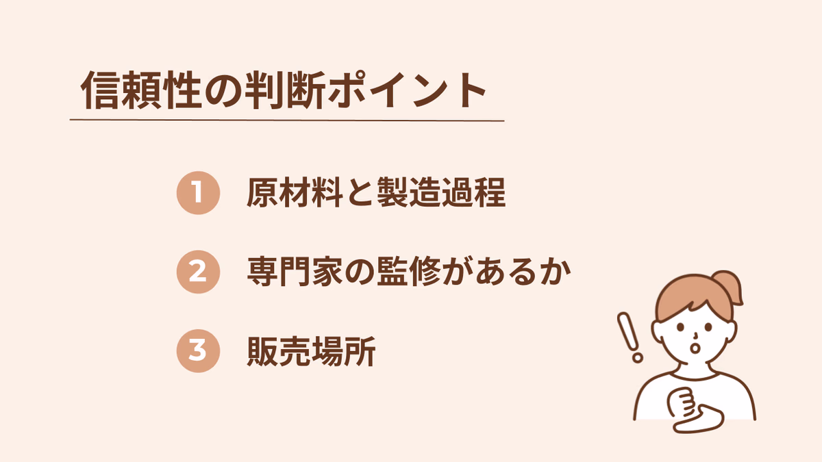 必要な栄養素が入っているか、原材料になにが使われているかなど、手に取った商品が「信頼できる商品か」の判断がむずかしいことがあげられます。