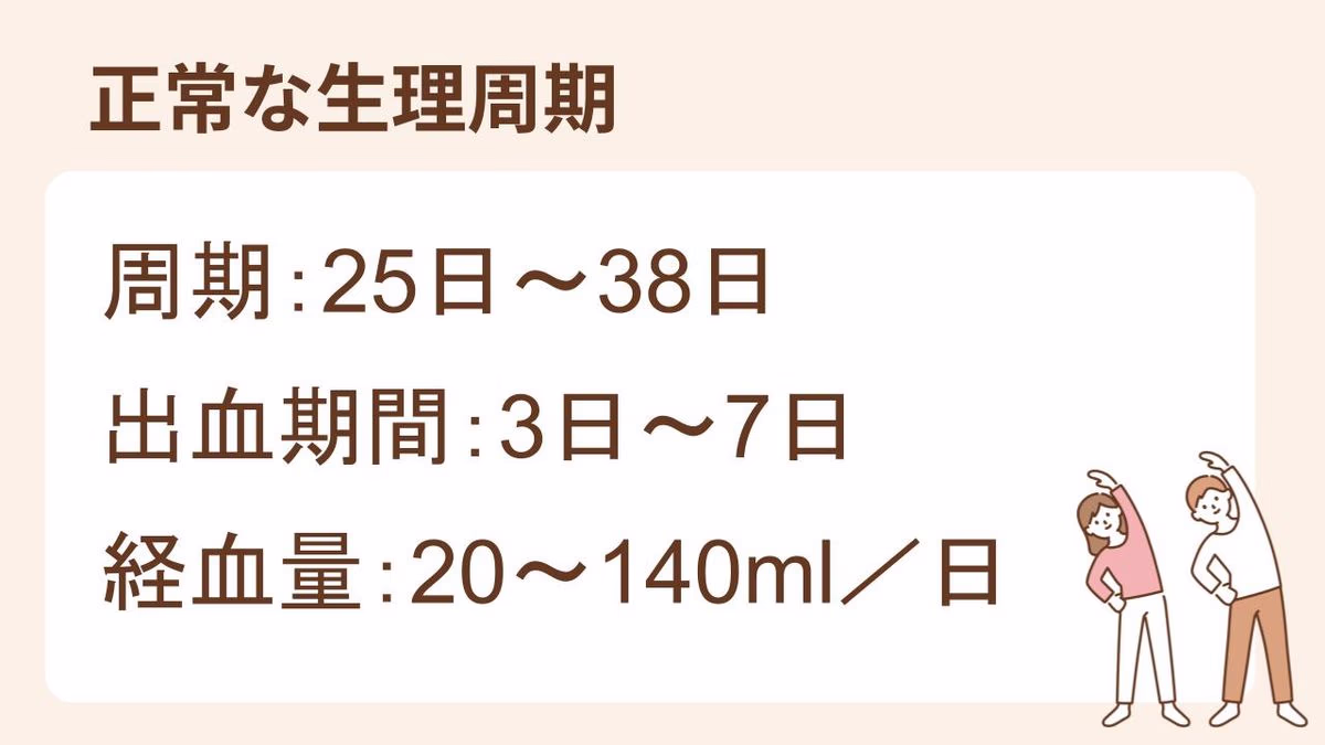 正常な生理周期は「25~38日」と言われており、それ以内であれば問題ないでしょう。
