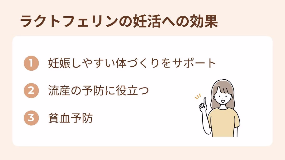 ラクトバチルス菌は妊娠率や着床率と関係があるため、ラクトフェリンの摂取は妊活のサポートに役立つといえます。