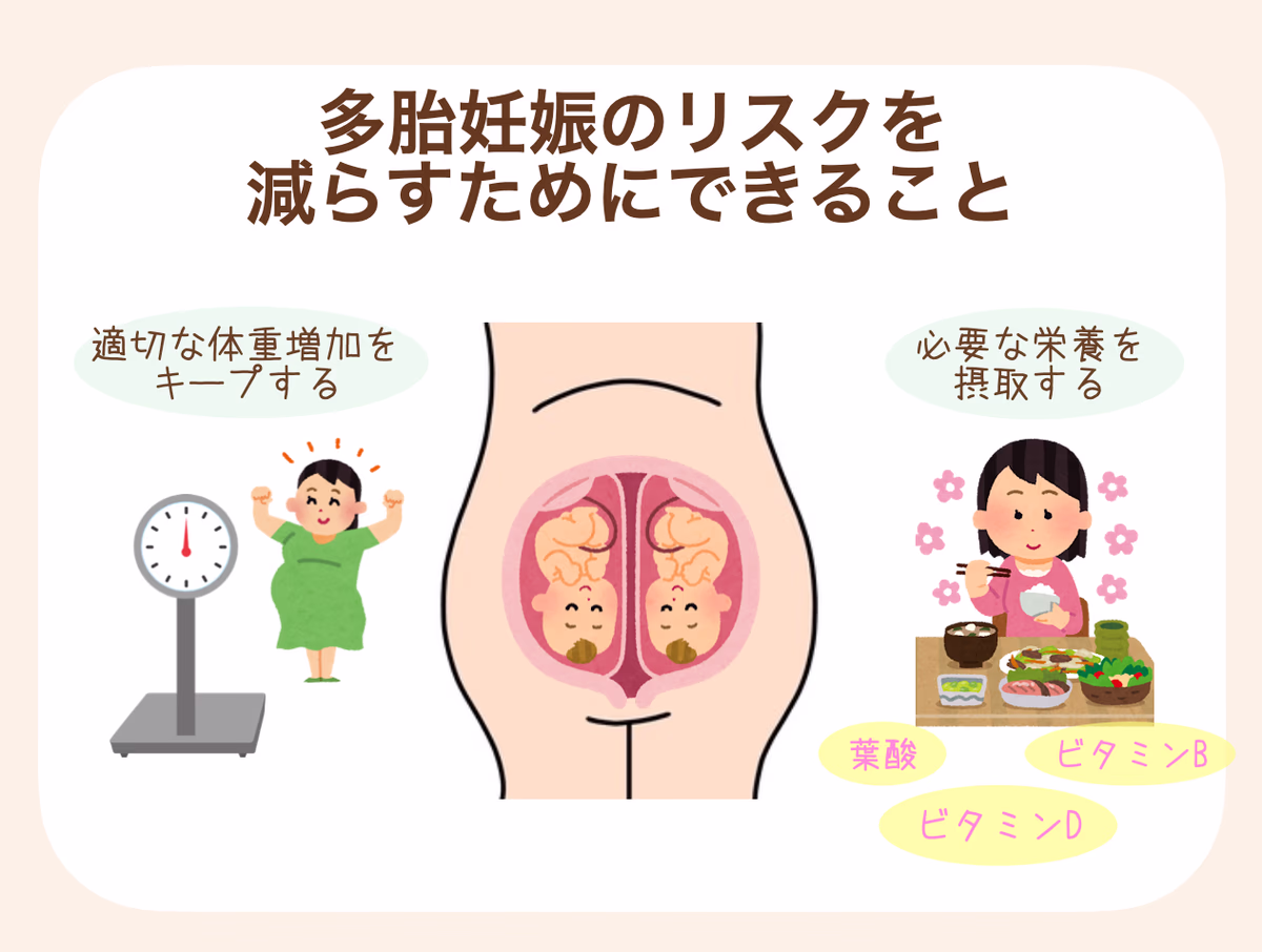 多胎妊娠となった場合には、ママと赤ちゃんの健康のために、できる限りリスクを減らしていくことが大切です。