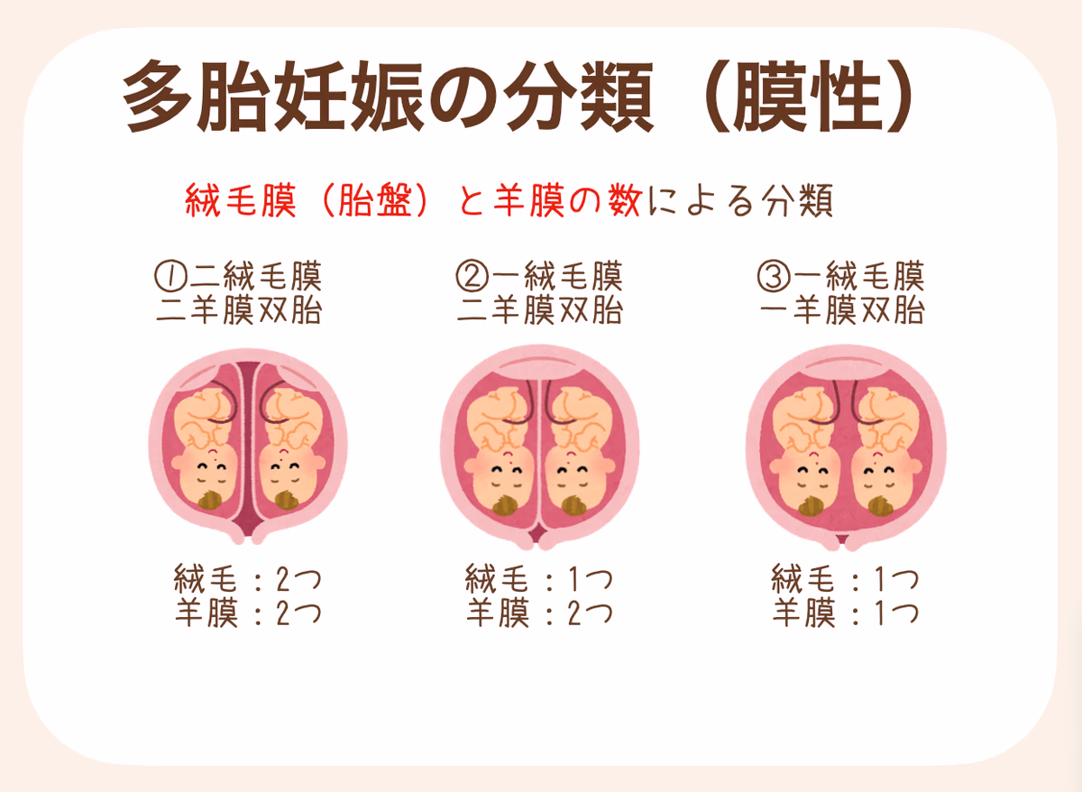 多胎妊娠の分類には2種類あり、「卵性」による分類と「膜性」による分類があります。