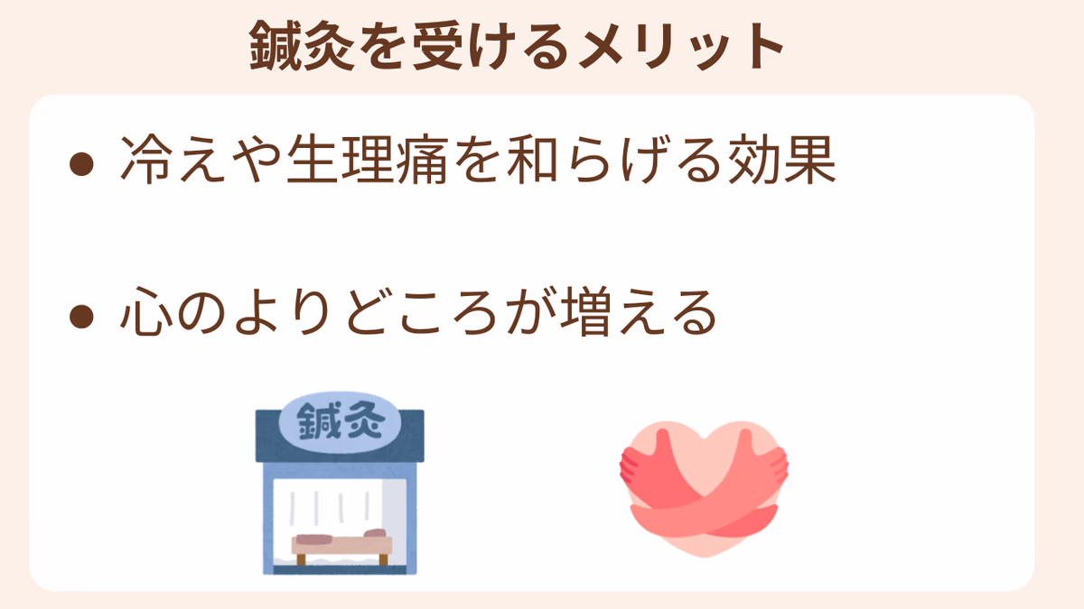 妊娠しやすさだけでなく、体の不調も一緒に整えられるのが鍼灸のうれしいメリットですね。