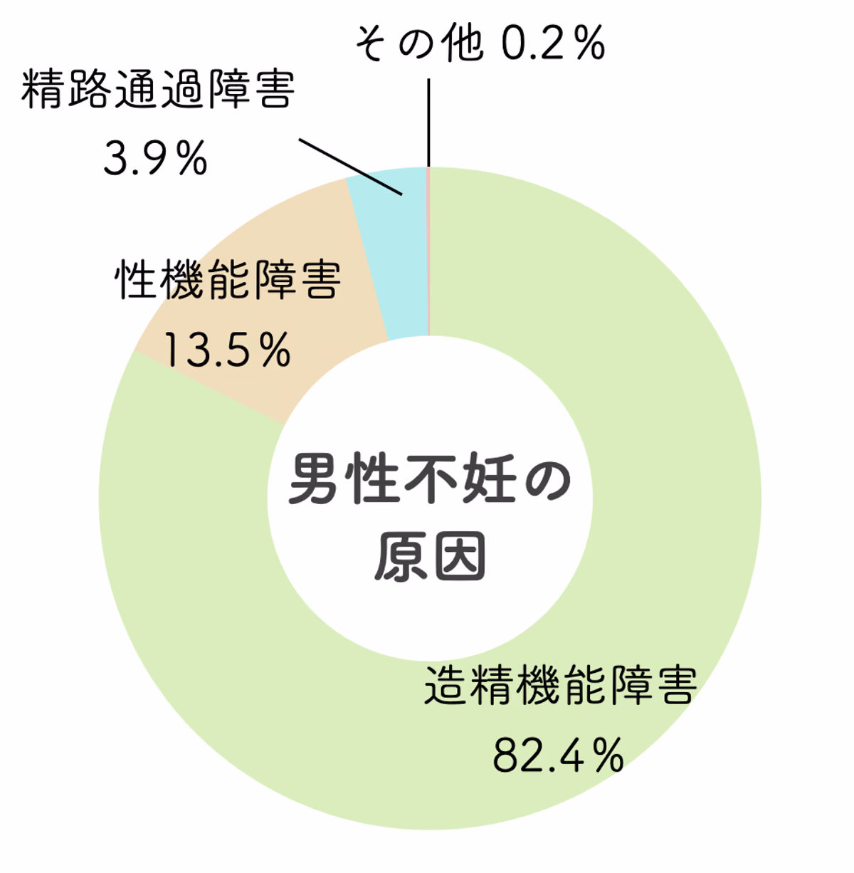 厚生労働省の男性不妊調査の結果、原因として最も多いのは「造精機能障害」です。