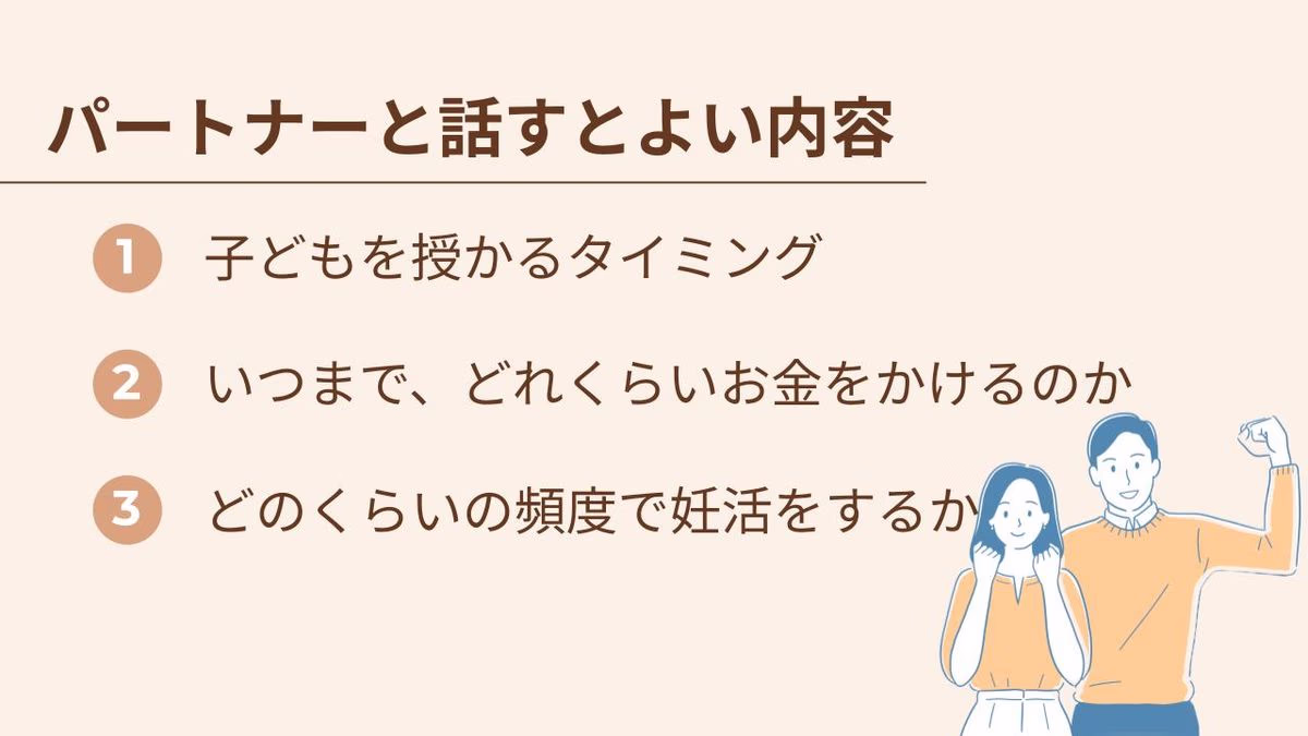 子どもを授かることについて、パートナーと具体的に話し合ったことはありますか?この機会にじっくりと話し合ってみましょう。