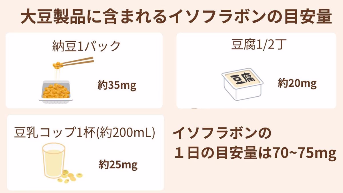 なお、厚生労働省からは「納豆や豆腐などの伝統的な大豆食品は、通常の食生活で摂る分には問題ない」とされているため、過剰に心配する必要はありません。