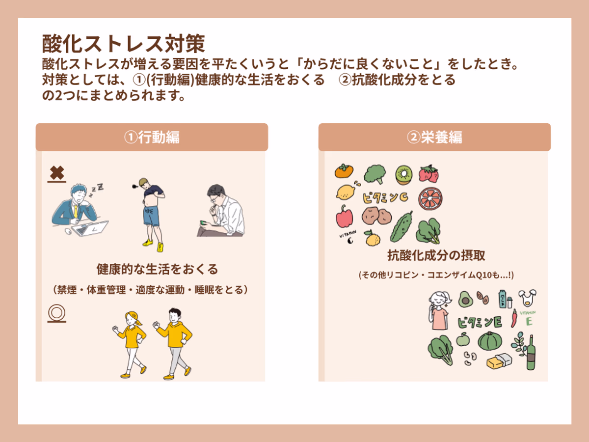 また栄養素の中には酸化ストレスに対抗する「抗酸化成分」があるものもあります。