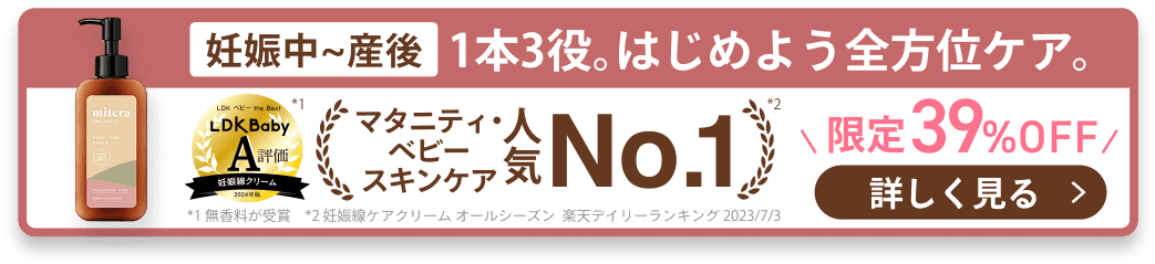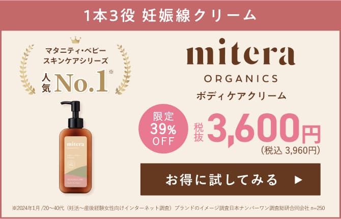 産後も諦めずに、mitera organics ボディケアクリームでのケアを続けてみてくださいね。