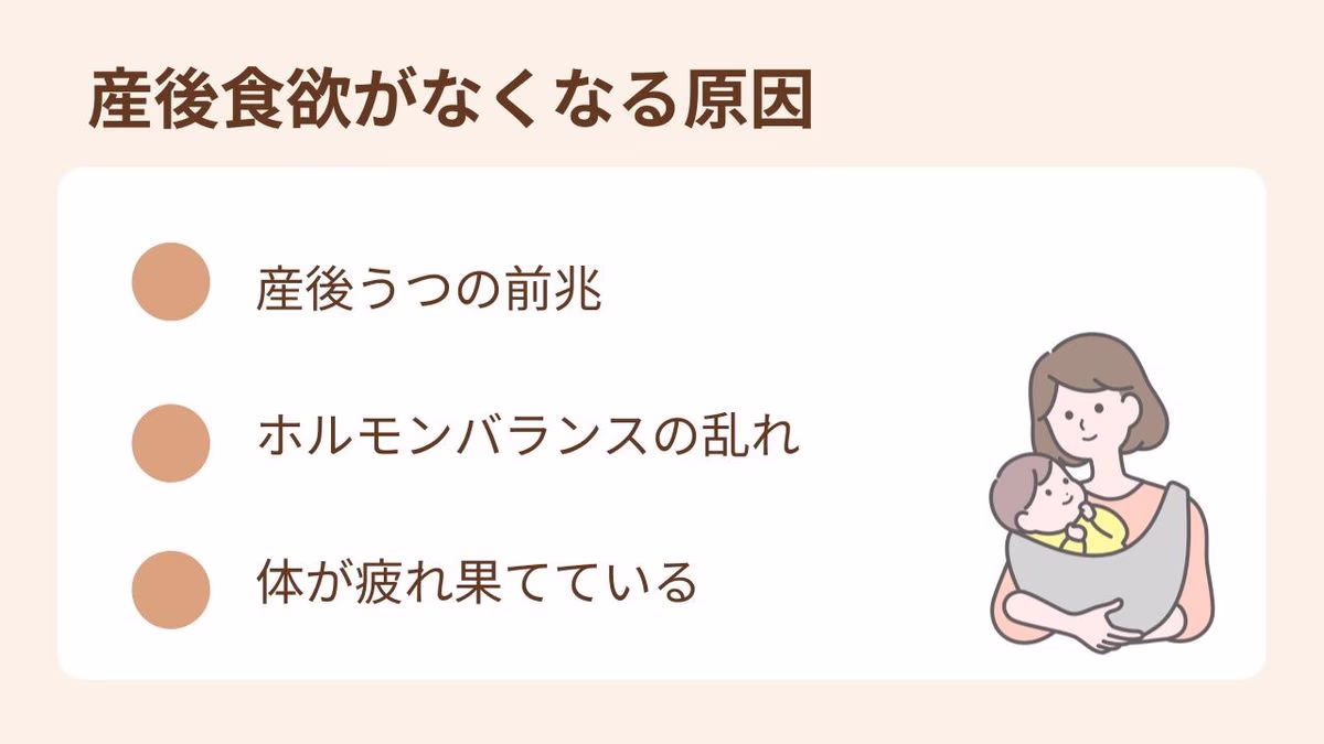 この記事では、産後に食欲がなくなる原因や、食べない状態が続いたときの影響について解説しています。