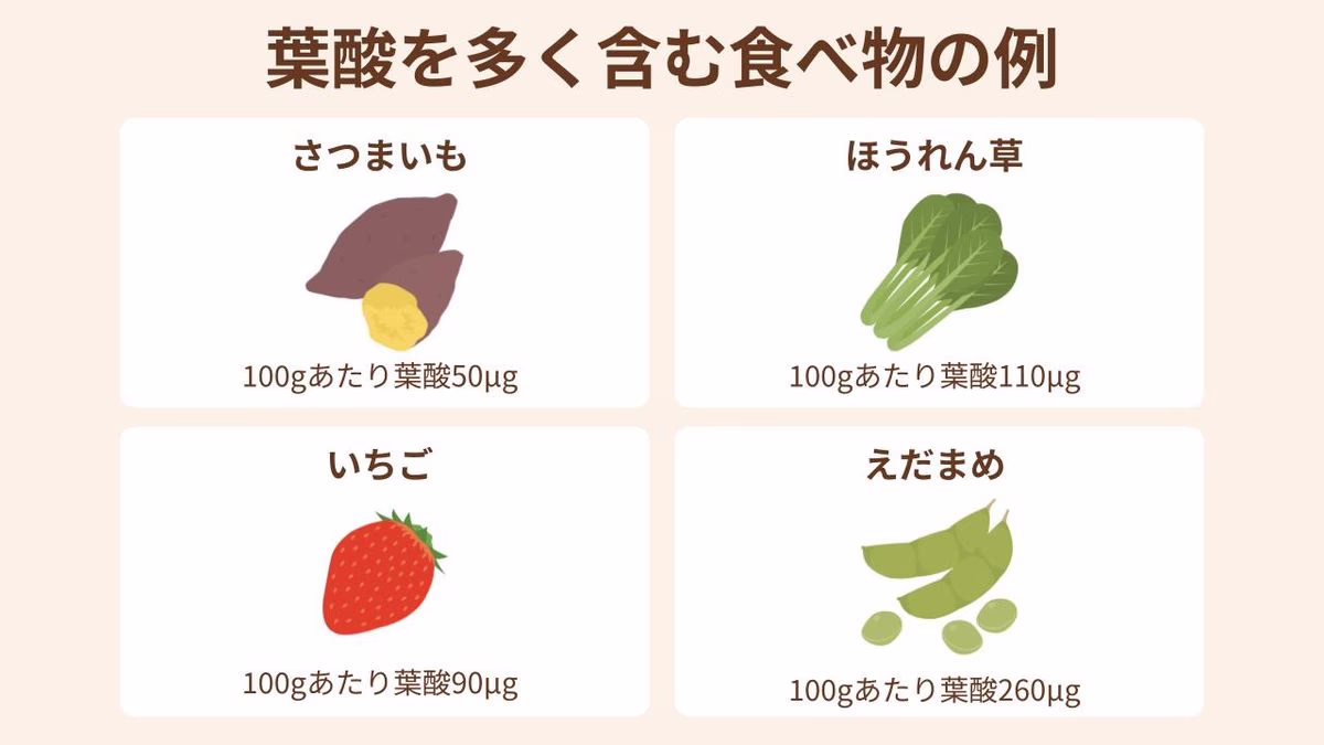 「副菜や汁物などに葉酸を多く含む野菜を使う」といった、意識的な摂取を心がける工夫をすると良いでしょう。