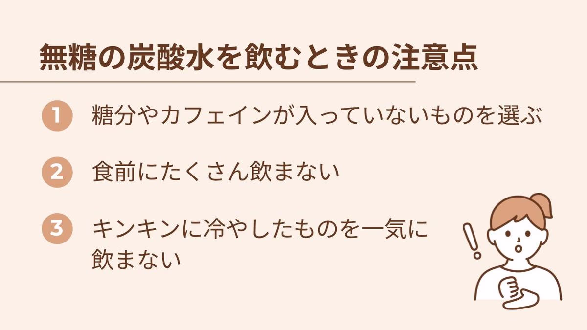 メリットの多い無糖炭酸水ですが、選び方や飲み方に注意点があります。