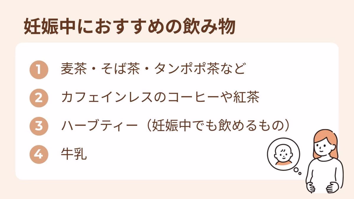 また、妊婦さんが避けたい飲み物やおすすめの飲み物などもご紹介。