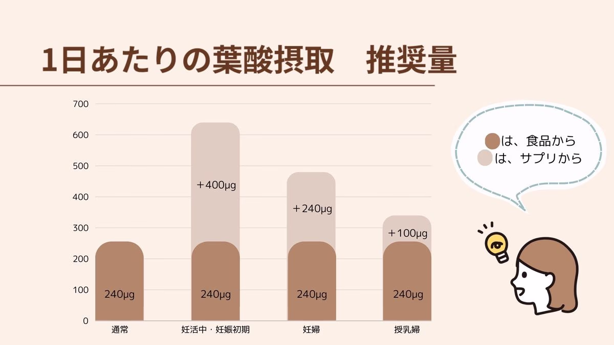 妊娠すると、いつもより多くの葉酸を摂ることが推奨されます。