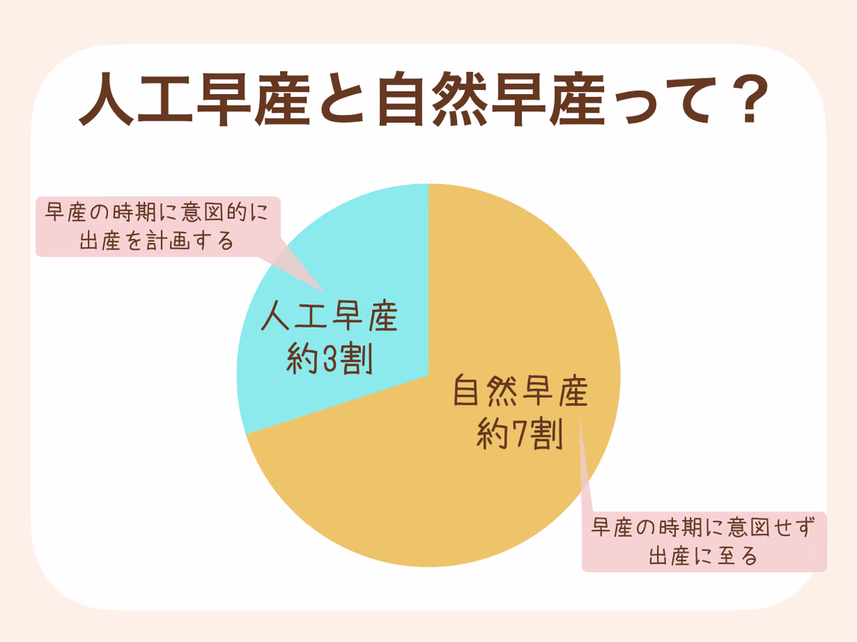 人工早産は、意図的に陣痛が来るように薬などを使う誘発分娩や帝王切開を行って出産します。