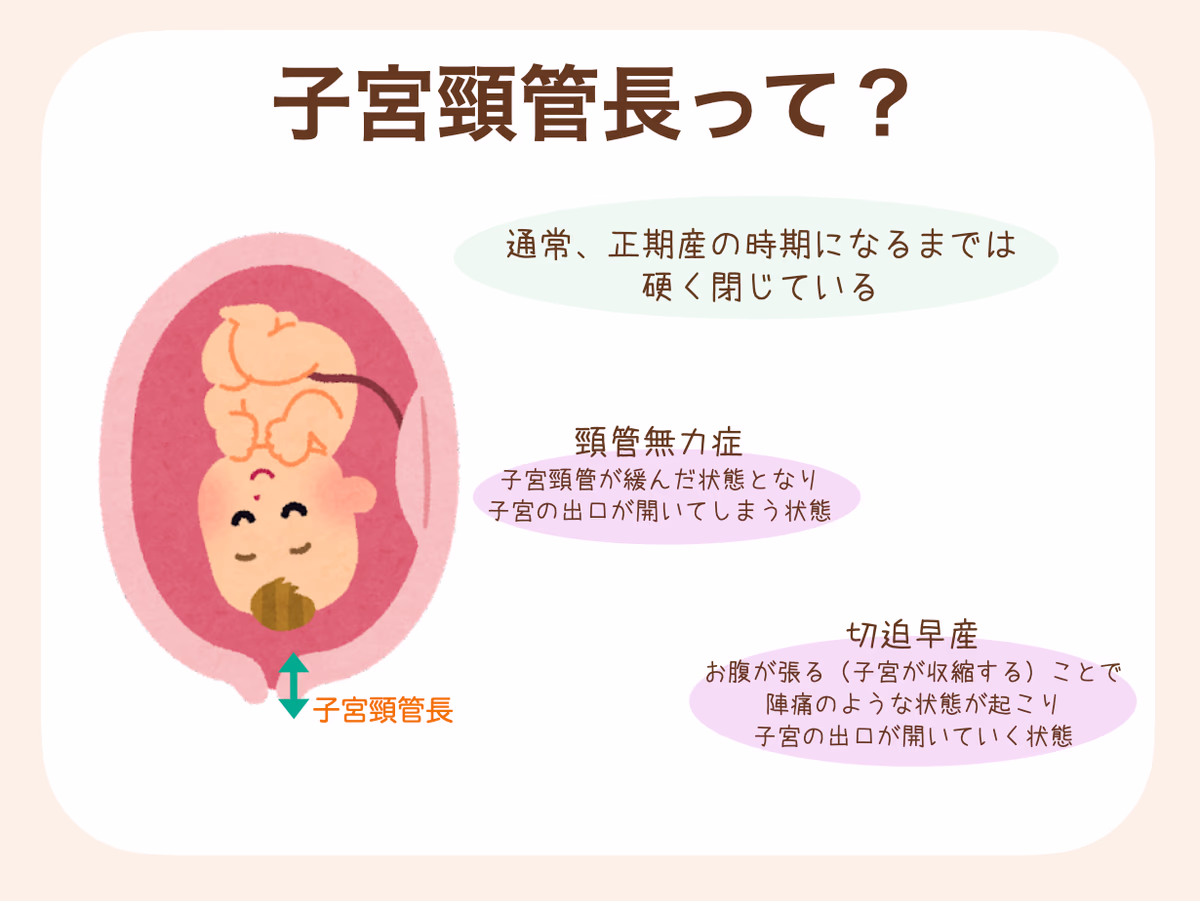 子宮の筋肉が収縮すると、子宮頸管長が薄く引き伸ばされることで子宮頸管長が短くなり、さらに力が加わることで子宮口(子宮の出口)が開いてきてしまいます。