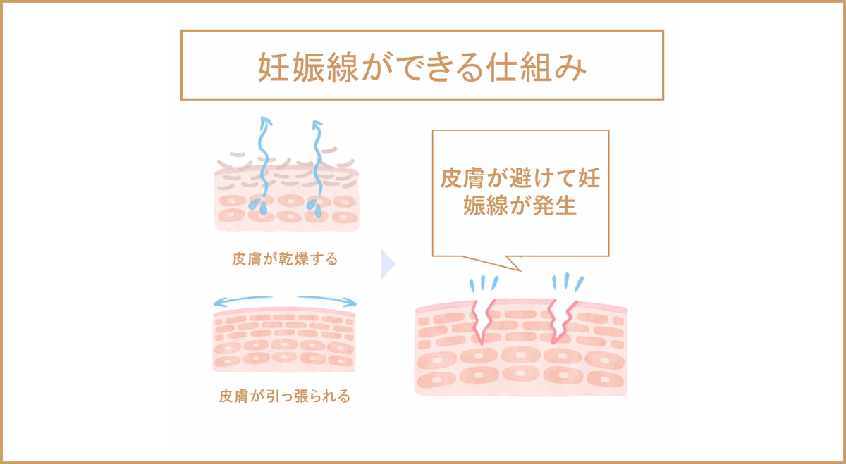 乾燥している皮膚は柔軟性に乏しく、伸びにくいため、断裂して妊娠線ができやすくなります。