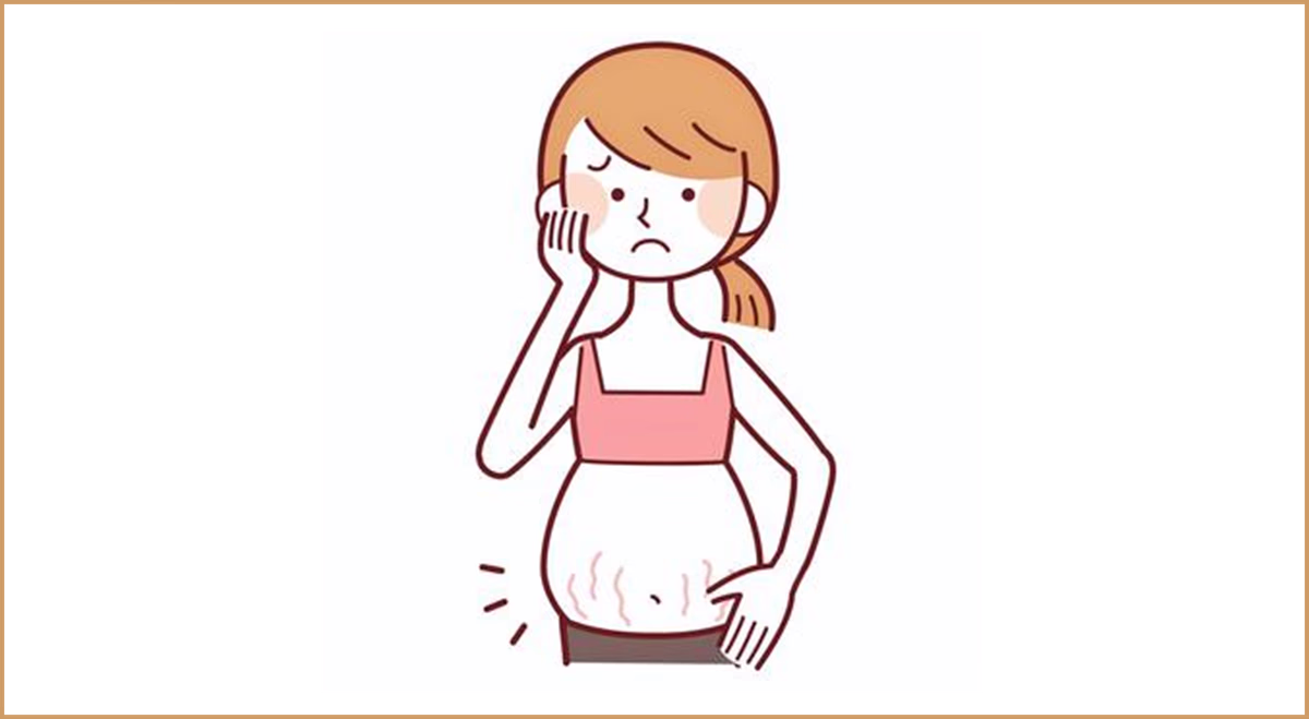 妊娠線とは、妊娠中に急激な体形変化により皮膚が裂け、赤紫色やピンク色の線状の線が、大きなおなかや乳房などに現れる現象です。