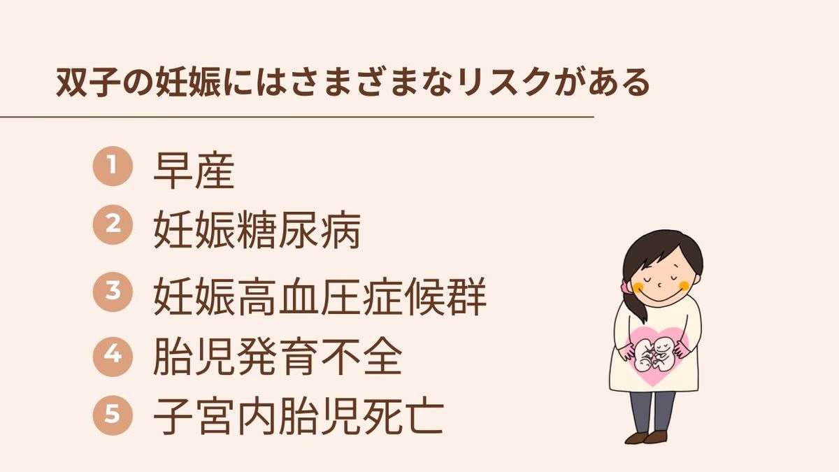 しかし、赤ちゃんをひとりだけ妊娠する単胎妊娠と比較すると、双子の妊娠はさまざまなリスクが高まることが知られています。