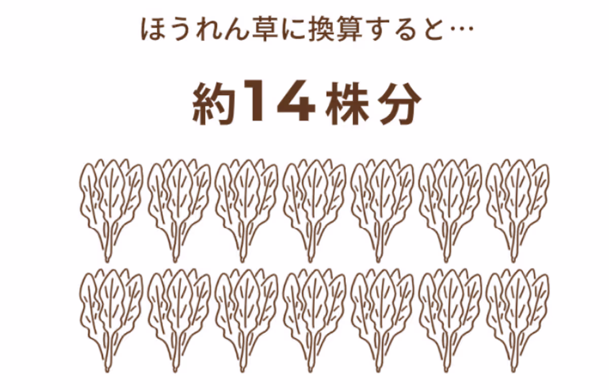 体内での吸収率を換算して、食事から1日の必要量400μgを摂ろうとすると、たとえばほうれん草なら、800μgの葉酸が含まれる量を食べなければなりません。