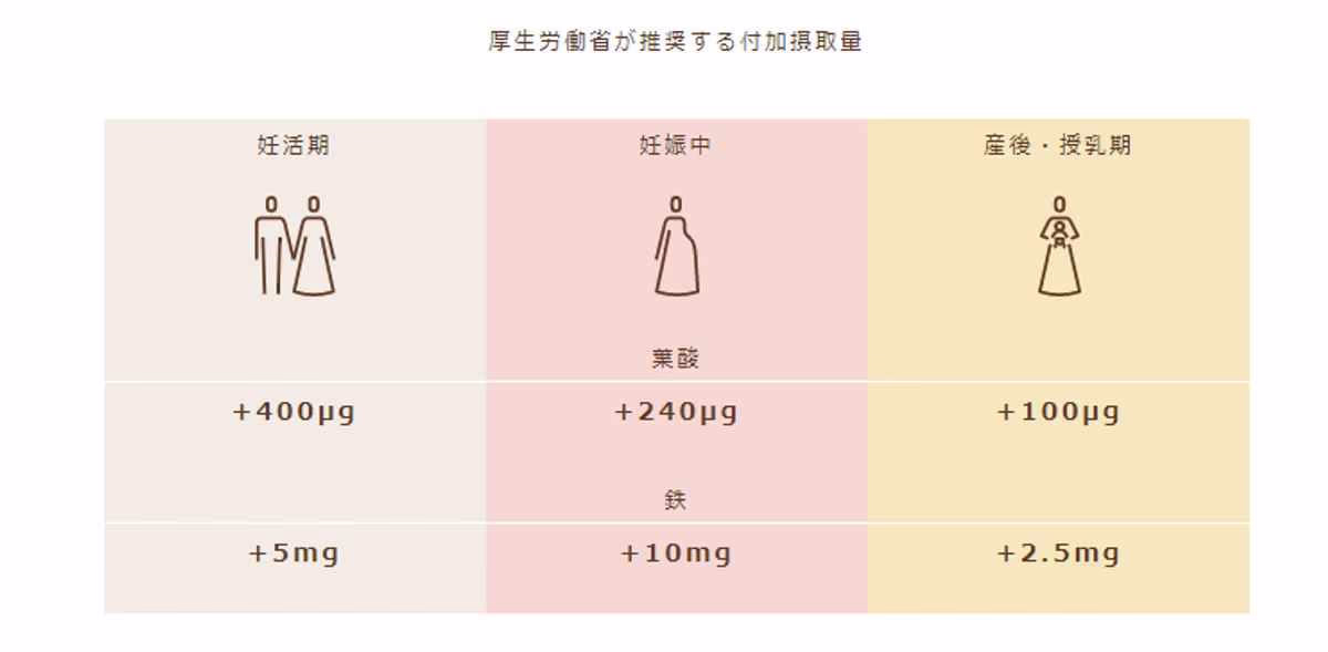 厚生労働省が定める栄養摂取量は妊活〜産後の時期ごとにそれぞれ異なります。