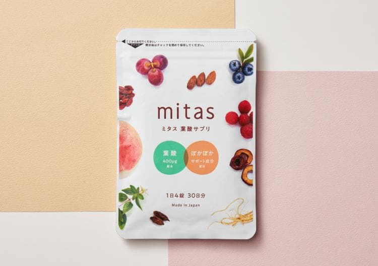 mitasは葉酸をはじめとした厚生労働省が推奨する量に準拠した、オールインワンの葉酸サプリメントです。